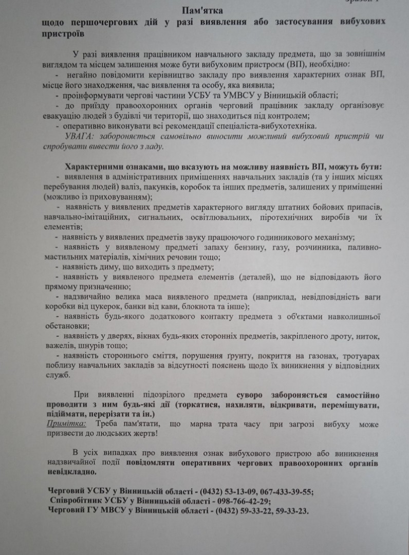 Інформація з питань поведінки у надзвичайній ситуації